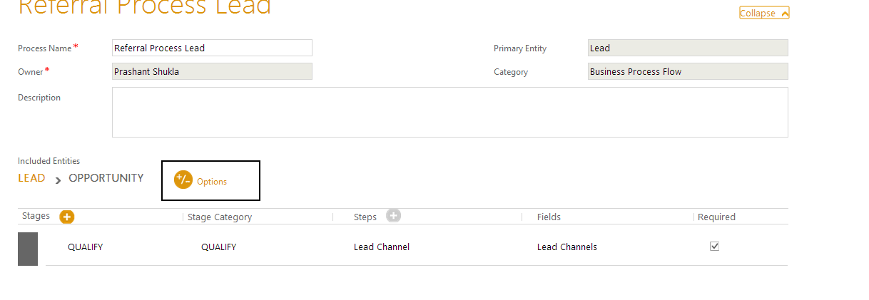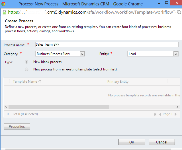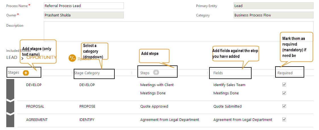 Click on new and select category of process as Business process flow. Now select the entity (Lead, Account, opportunity and cases in some scenarios). By default it is available for few entities rather transactional entities related to sales and case entity.
