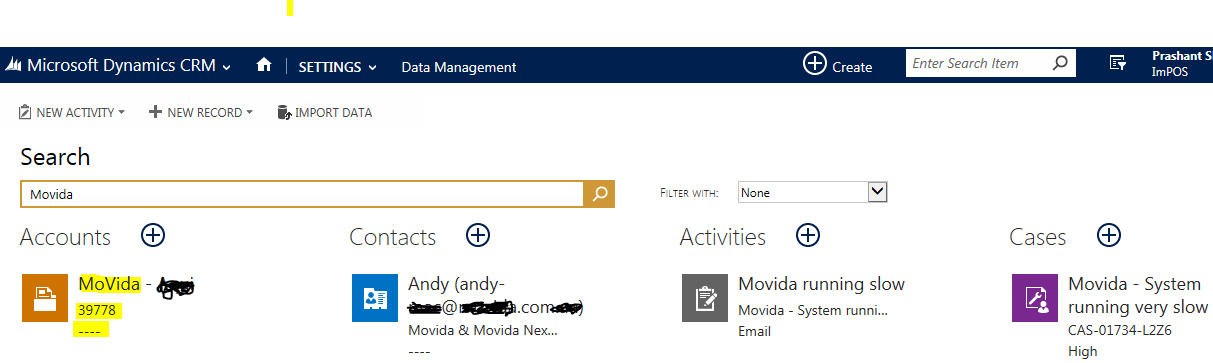 On the top navigation, locate to quick search and type text>>click enter (I am searching an account named ‘Movida’)