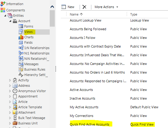 Locate-Quick Find Active Accounts under views