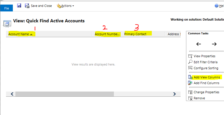 So, if i wish to add Address 1: City. I will need to click on ‘Add view columns’and add my desired field here and with the help arrow keys visibl, i will bring it to either of 1st three positions.