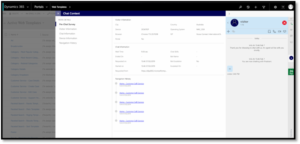 User/Agent logged in to D365 can pick up this chat and see all the stats related to it.