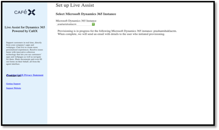 Manage will take you to Set up Live Assist Page>>Select the instance of your D365 CRM here