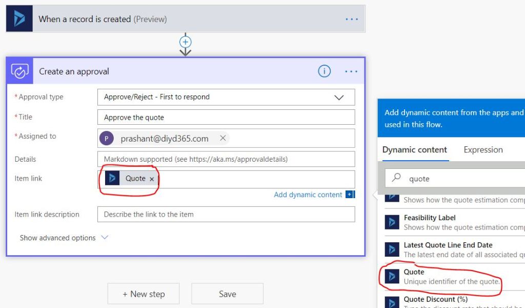 Scenario: Whenever a quote is created a approval request must be sent out with a link/URL of quote to be approved.